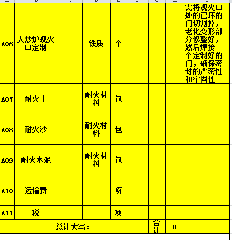 厨房维修项目配件